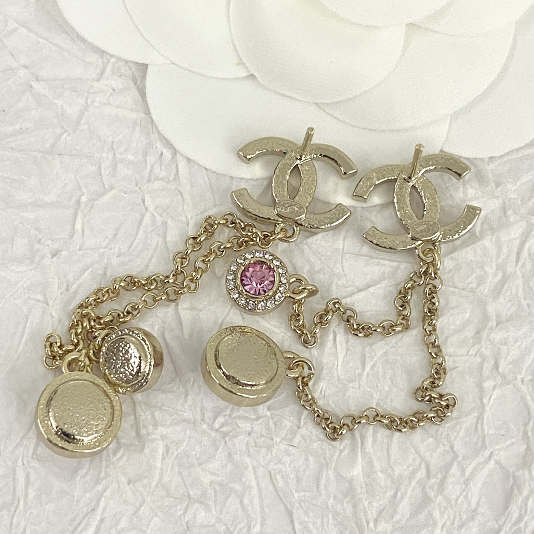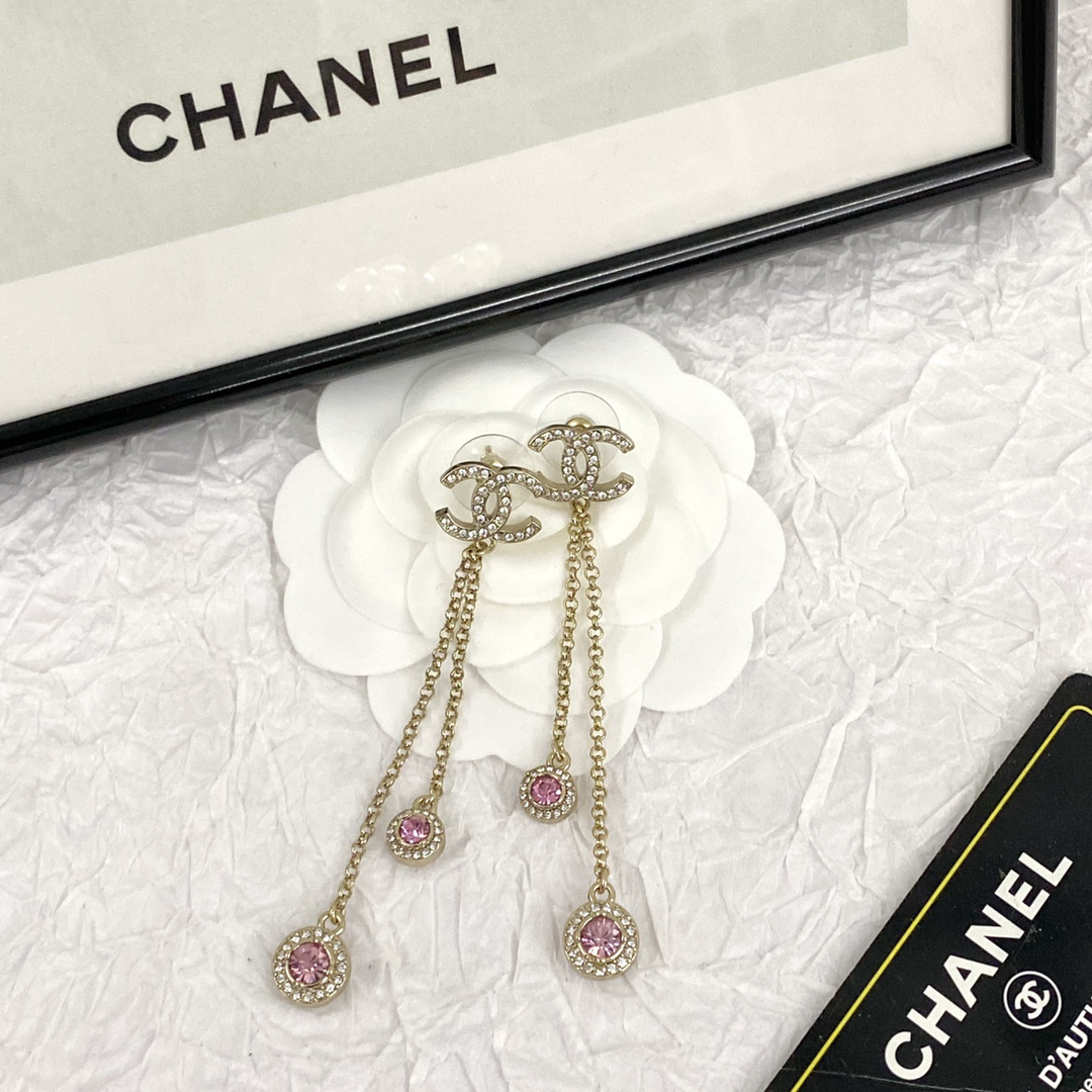 65Chanel bestselling earringsNew arrivalSame zp brass textureCHAN 23 rhinestone double c tassel pink gemstone earringsCrystal clear pink gemstone bling bling in the sunExquisite and highend pink and tender Super agereducing temperament