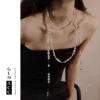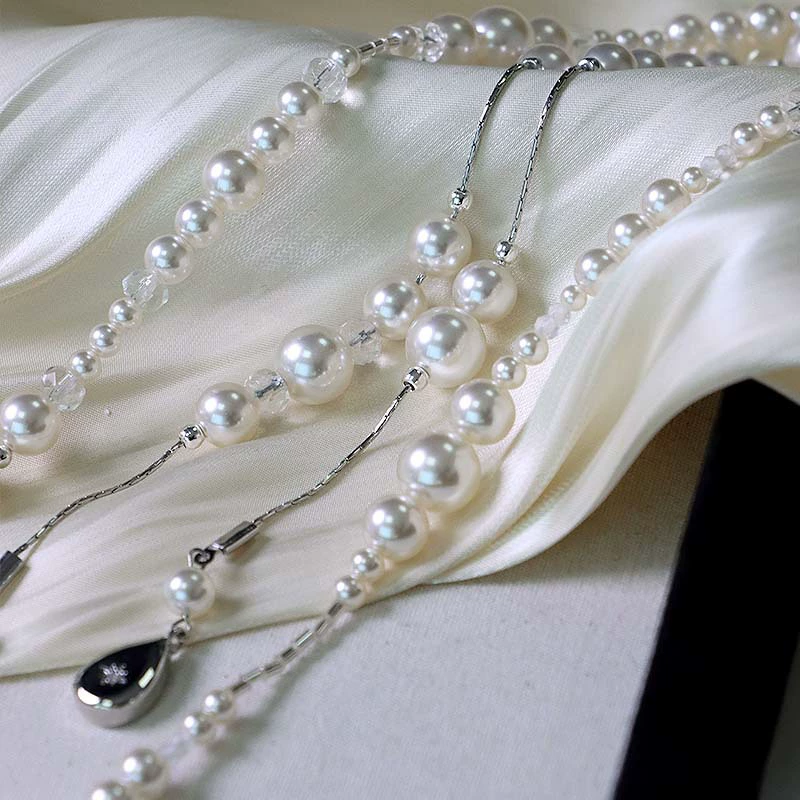 Crossborder European and American broken layered pearl sweater chain threelayer asymmetric necklace womens French multilayered pearl necklace