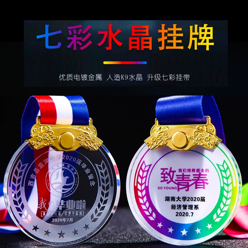 Crystal childrens medals for school sports games metal small tags customized marathon running medals with engraving wholesale