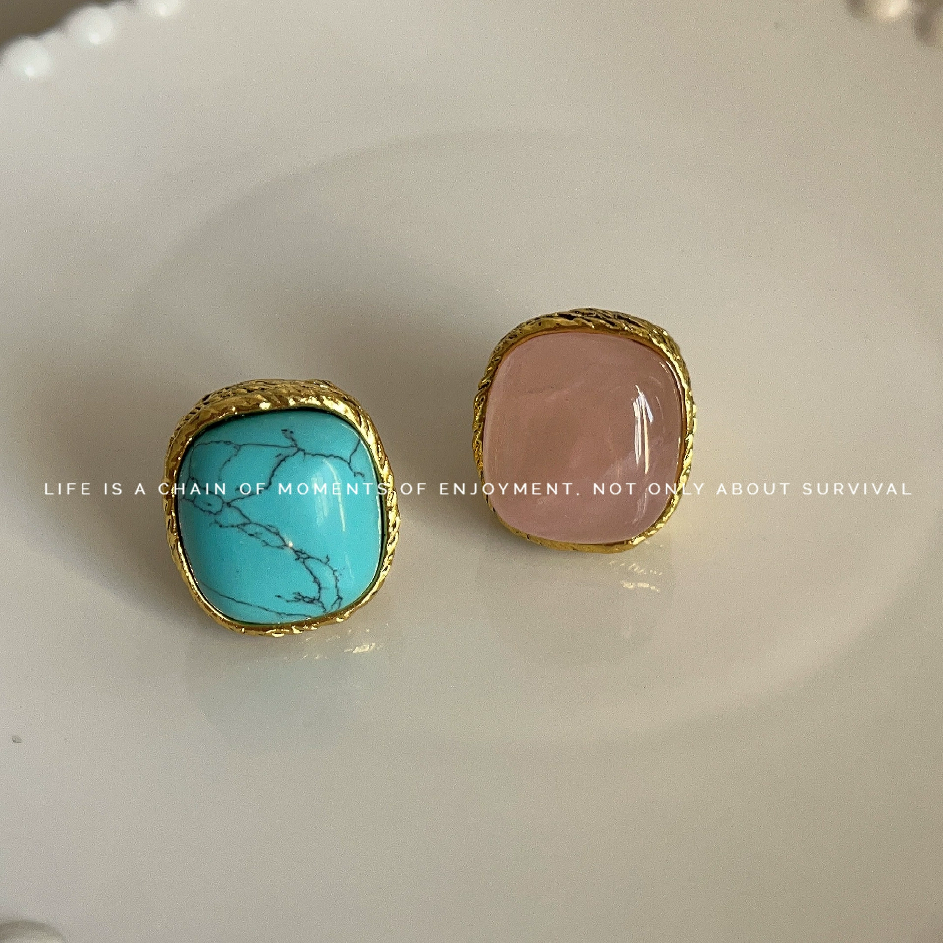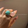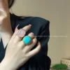 Be the first to review “French niche design ab pink crystal ring for women fashionable retro metallic exaggerated turquoise index finger ring”