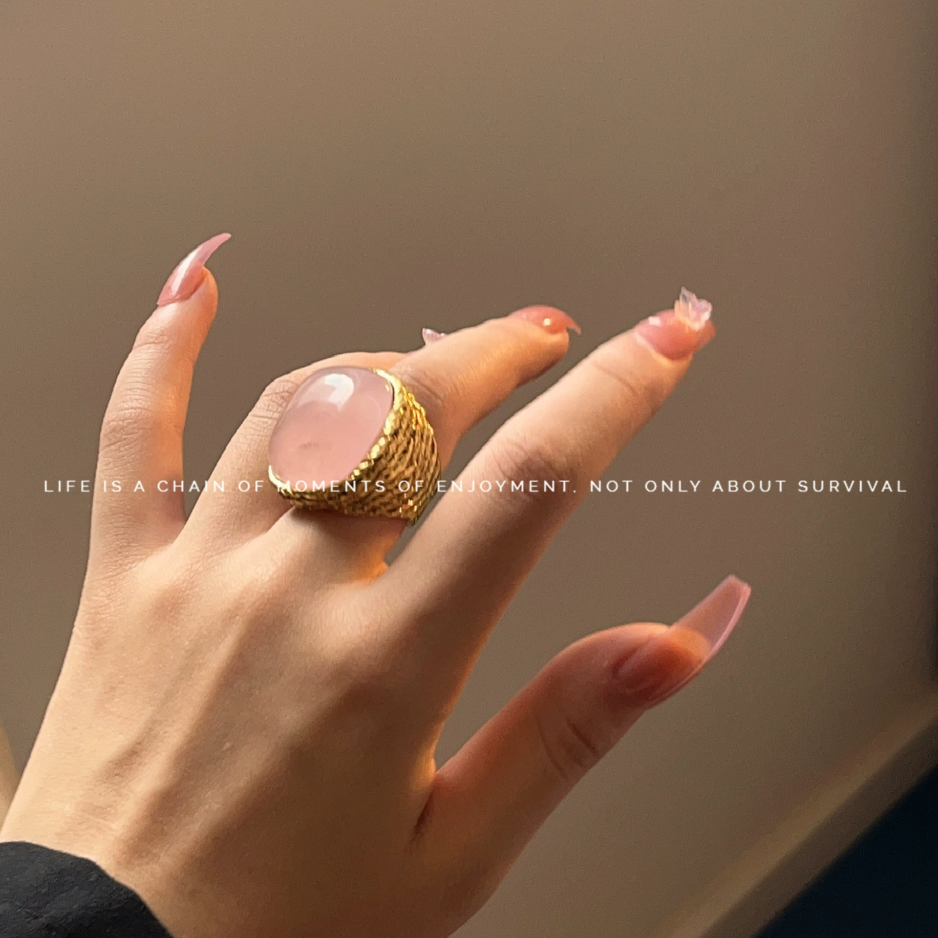 French niche design ab pink crystal ring for women fashionable retro metallic exaggerated turquoise index finger ring