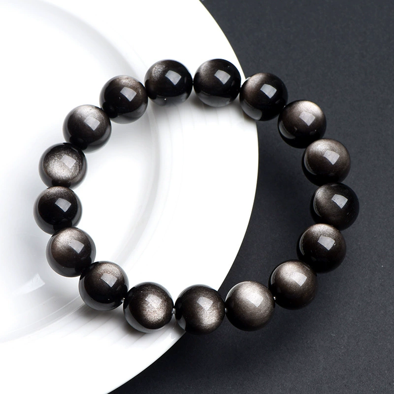 Jiuya Crystal Natural Double Eyed Obsidian Bracelet Fashion Couple Bracelet Domineering Bracelet Factory Direct Sales