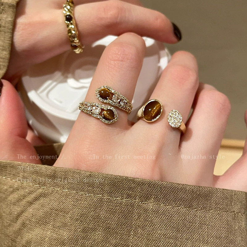 Maillard snakeshaped tiger eye stone open ring for women highend unique design retro index finger ring light luxury ring