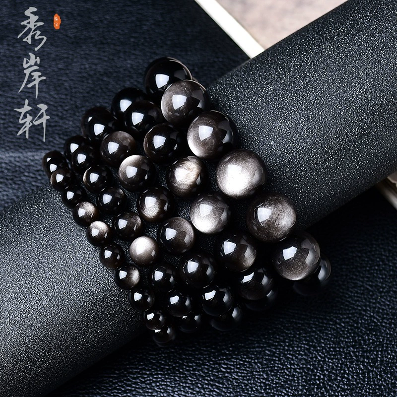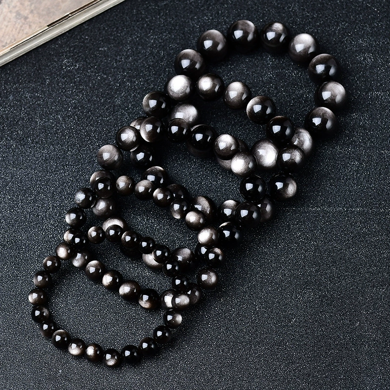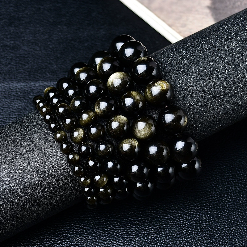 Natural obsidian gold obsidian silver obsidian bracelet to attract wealth for men and women Buddhist bead crystal bracelet couple jewelry gift