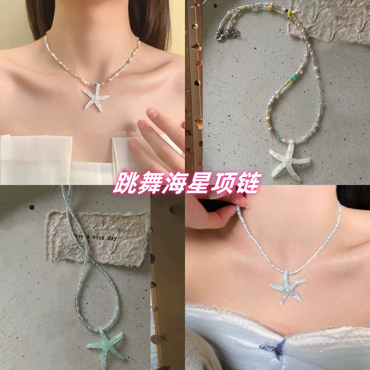 New dancing starfish necklace holiday stacked necklace summer seaside fresh dopamine color y2k clavicle chain