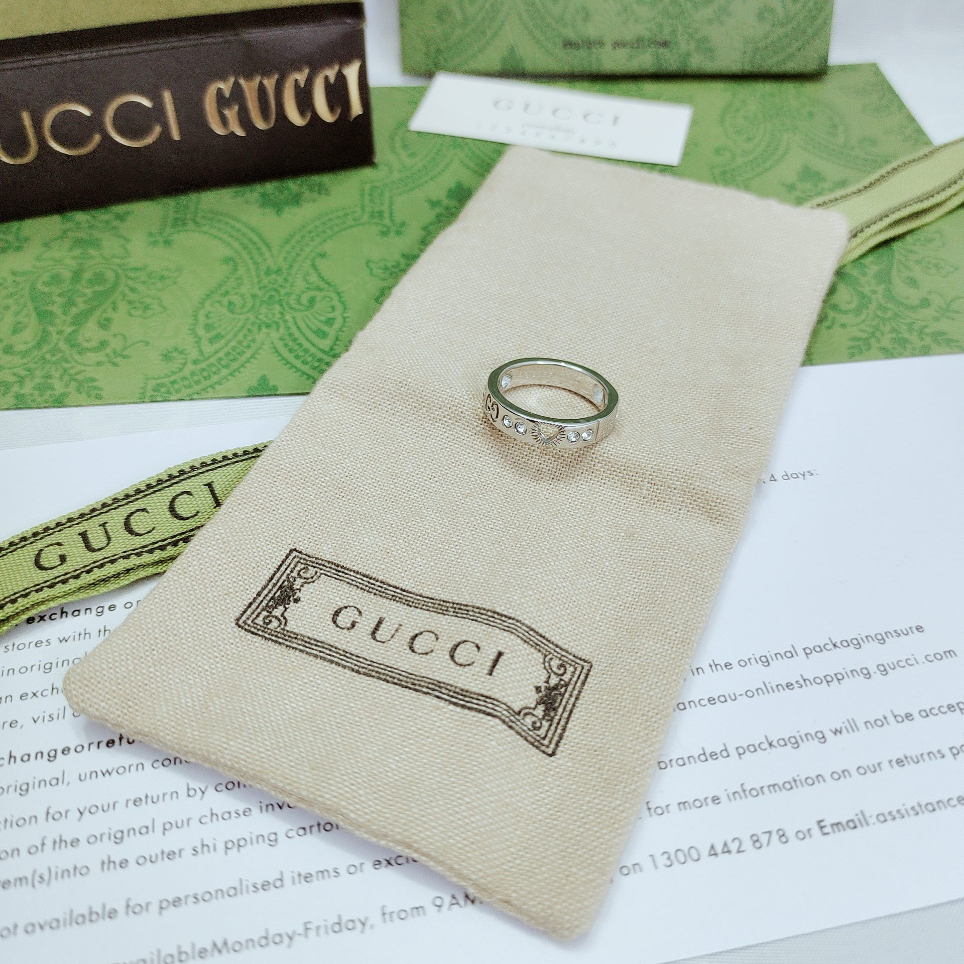P45Guccis lcon series accessories have reinterpreted the iconic pattern in the early spring of 2020 The heart pattern is presented on this white gold ring with hollow details and amphibole injecting a sense of mystery into the ring and giving the classic shape a unique atmosphereSize 678910 accessories