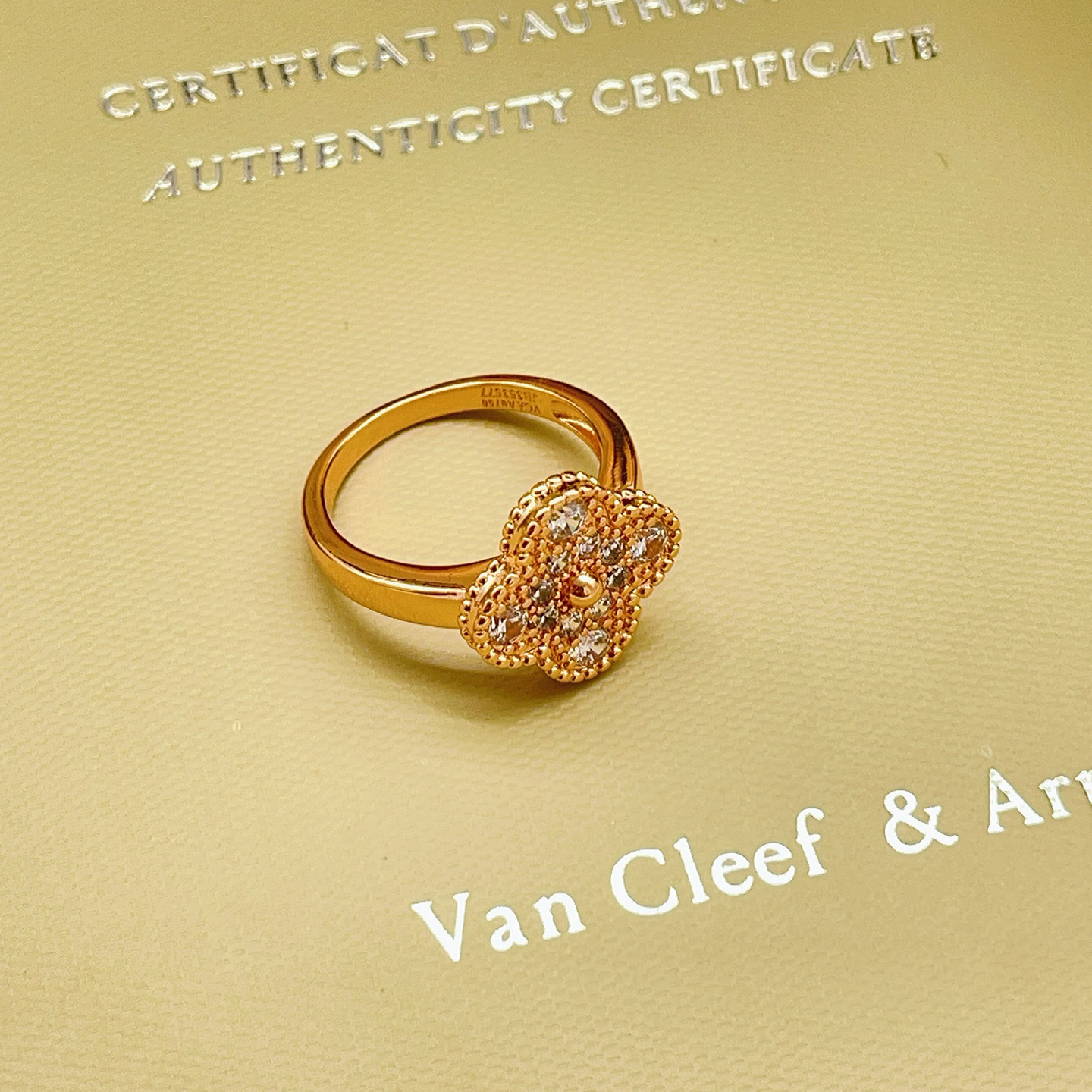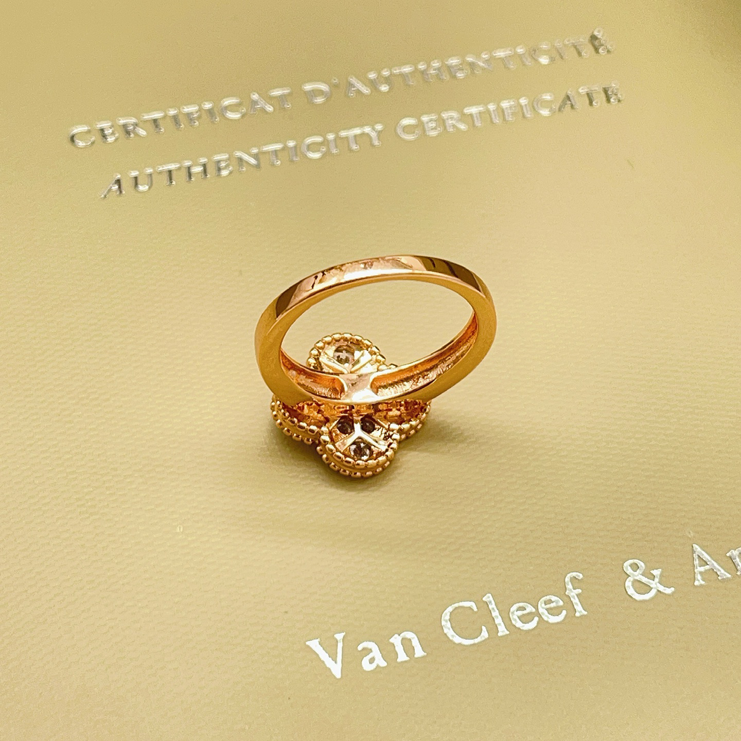 P50VJ004 rose goldSize No 6 No 7 No 8VanCleefArpel fourleaf clover rose gold diamond ring consistent ZP brass material very photogenic The design is very special and worth buyingHighend handmade workshop series