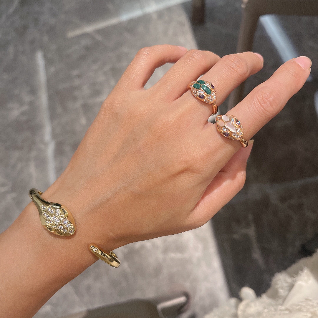 P58 Bvlgari Snake Ring925048Fashionable and luxurious high craftsmanship high quality brand jewelry Grid design on the back 18K electroplating subgold material code number 68