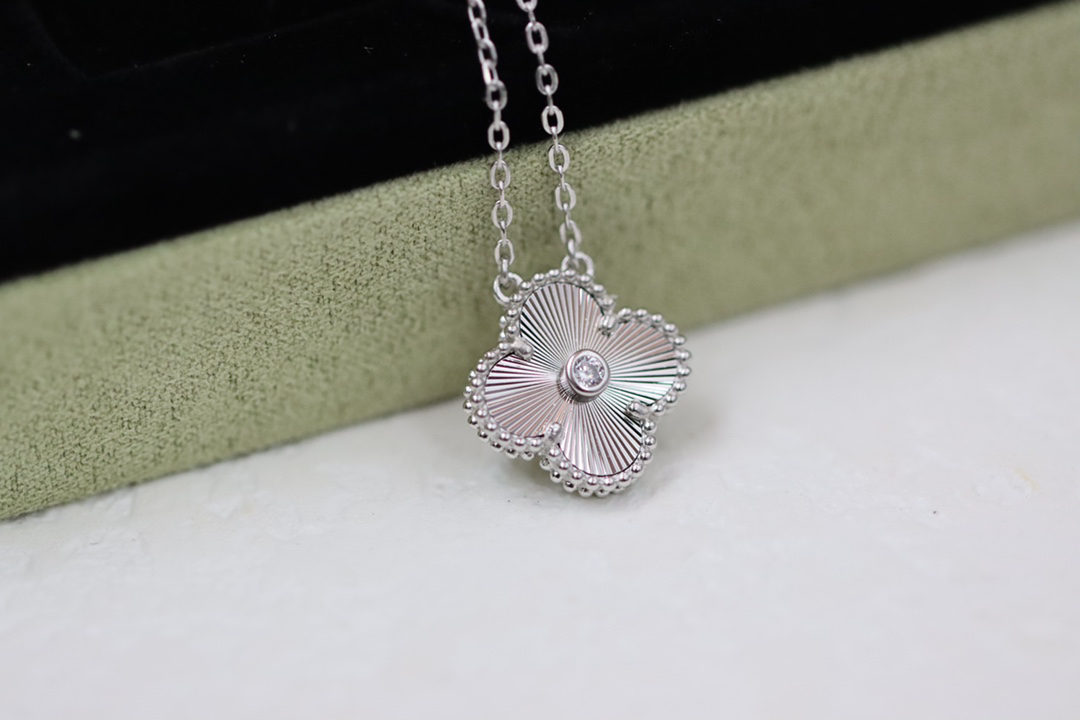 P98 s laser fourleaf clover collarbone necklace with diamondsA musthave for fair and beautiful women perfect for layeringTwo pieces can also be worn as a choker necklacezp18k real gold and real diamond real shot 925 sterling silver customizedExclusive jewelry craftsmanship superb texture and workmanship