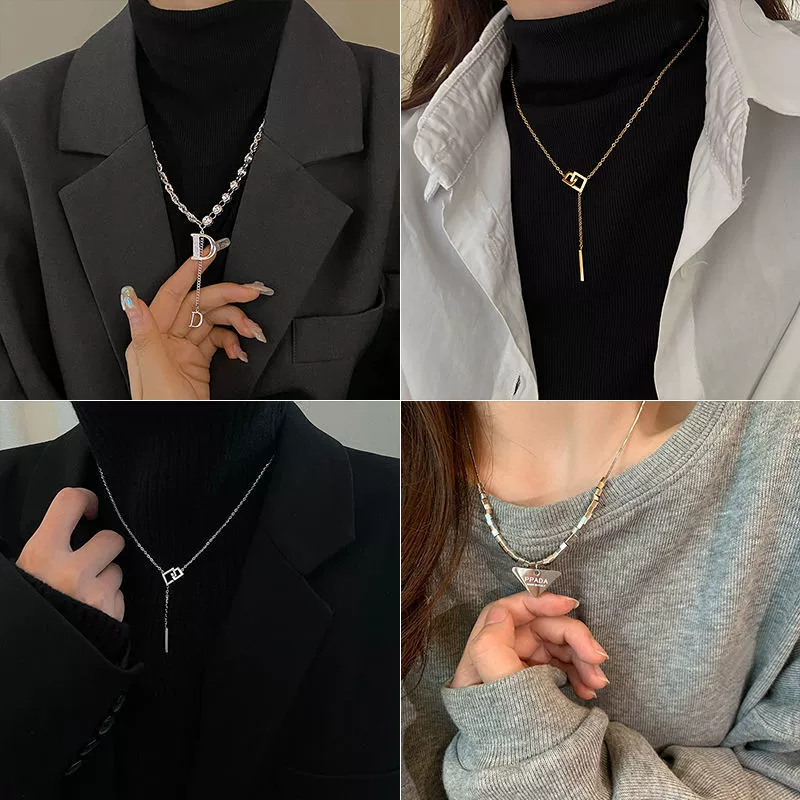 Simple design sweater necklace womens highend long necklace niche temperament double layer sweater chain jewelry wholesale