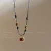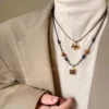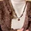 Be the first to review “Tiger eye stone braided leather rope necklace autumn and winter 2024 Yadan new hot style sweater retro style matching”